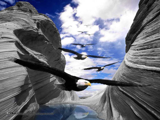 运用图片素材的本身来寻找影像的突破点,依据图形自身所产生的空间感,光感,等一些突出的地方,来加以利用,从而突出影像的主题。如图,图中的电梯产生了强烈的空间感,稍加修饰一张好的作品就问世了。